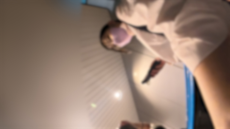 降りのエスカで放心状態の横顔を盗撮すると、こちらに気づいていそうな様子。